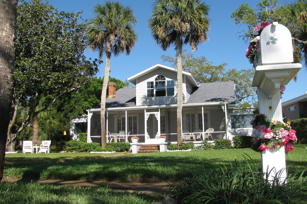 The Waterside Cottage House is part of a private estate. It is located on prestigious and historic Victoria Drive in delightful Dunedin, Florida.