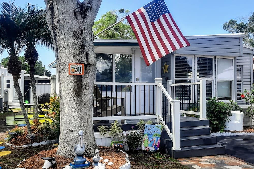 We like to call it our "tindominium". This cozy space offers all of the touches to make you feel right at home! The one-bedroom park style RV, (permanently located) with heat/ac, fully equipped kitchen and bathroom is roomy enough to accommodate 4 adults with the additional two single beds in the Florida room and queen size bed in the bedroom. Full.......read more