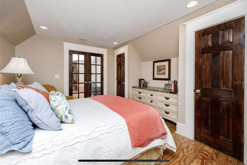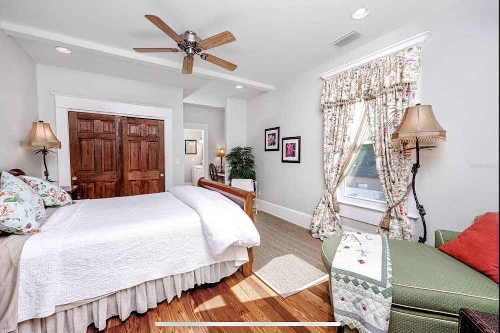 The complete third story of this home is called The Houston Master Suite named after the current owners. The largest of the four total bedrooms in our historic home. The home is one block from picturesque downtown Dunedin. You have an ensuite master bedroom with a king bed and kitchenette, a sitting room with sleeper sofa as a second sleeping spac.......read more