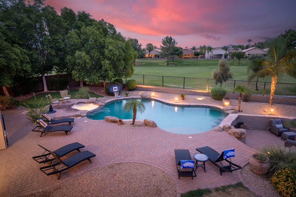 ☆★ Our home in Mesa is spacious, measuring 4000 sq ft. It's perfect for shopping and dining retreats. The backyard is an oasis with a heated pool, spa, putting green, and fire pit. W.......read more