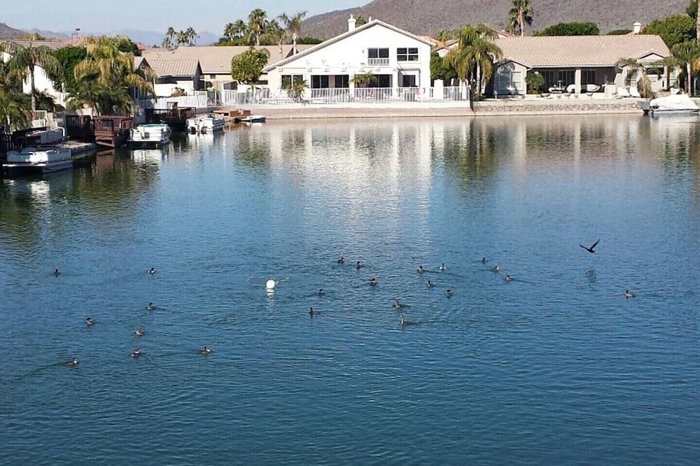 This house is a single detached residence. Great location - convenient to shopping and 10 minutes away from the University of Phoenix stadium. Private**HEATED** pool. Catch and release fishing. Pedal, pontoon boats and a BBQ are available for your use. Four ( 4 ) flat screen tvs : 65 in, 55 in, 43 in, and 40 inch. DIRECTV. NETFLIX and AMAZON PRIME........read more