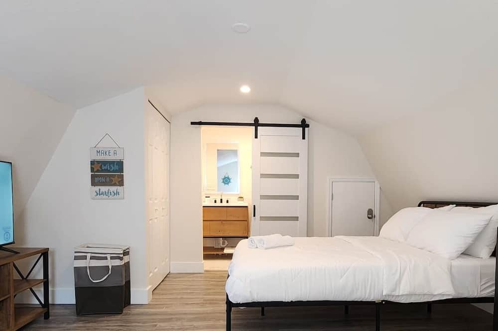 This ~750 sqft, 2 bedroom, 2 full bathroom cottage is located on the 1st floor of a 3-cottage unit. Open the door and walk 45 seconds to white-sand beaches.