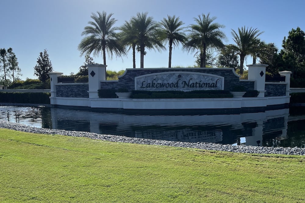 Lakewood National 1st floor veranda with a one car garage. This turnkey furnished unit has a great lake view and distance golf view for privacy. No golfer will be disturbing you as you drink your morning coffee on the screened lanai. This is a 2 bedroom with den that has a sleeper sofa if needed. Golf and amenity transfer is $214.00. Owner would co.......read more