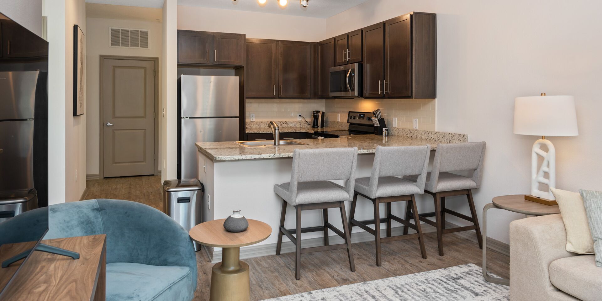 Preserve at Riverwalk is a popular property where Landing offers fully furnished 1-bedroom, 2-bedroom, and 3-bedroom apartments stocked with everything you need to feel at home.