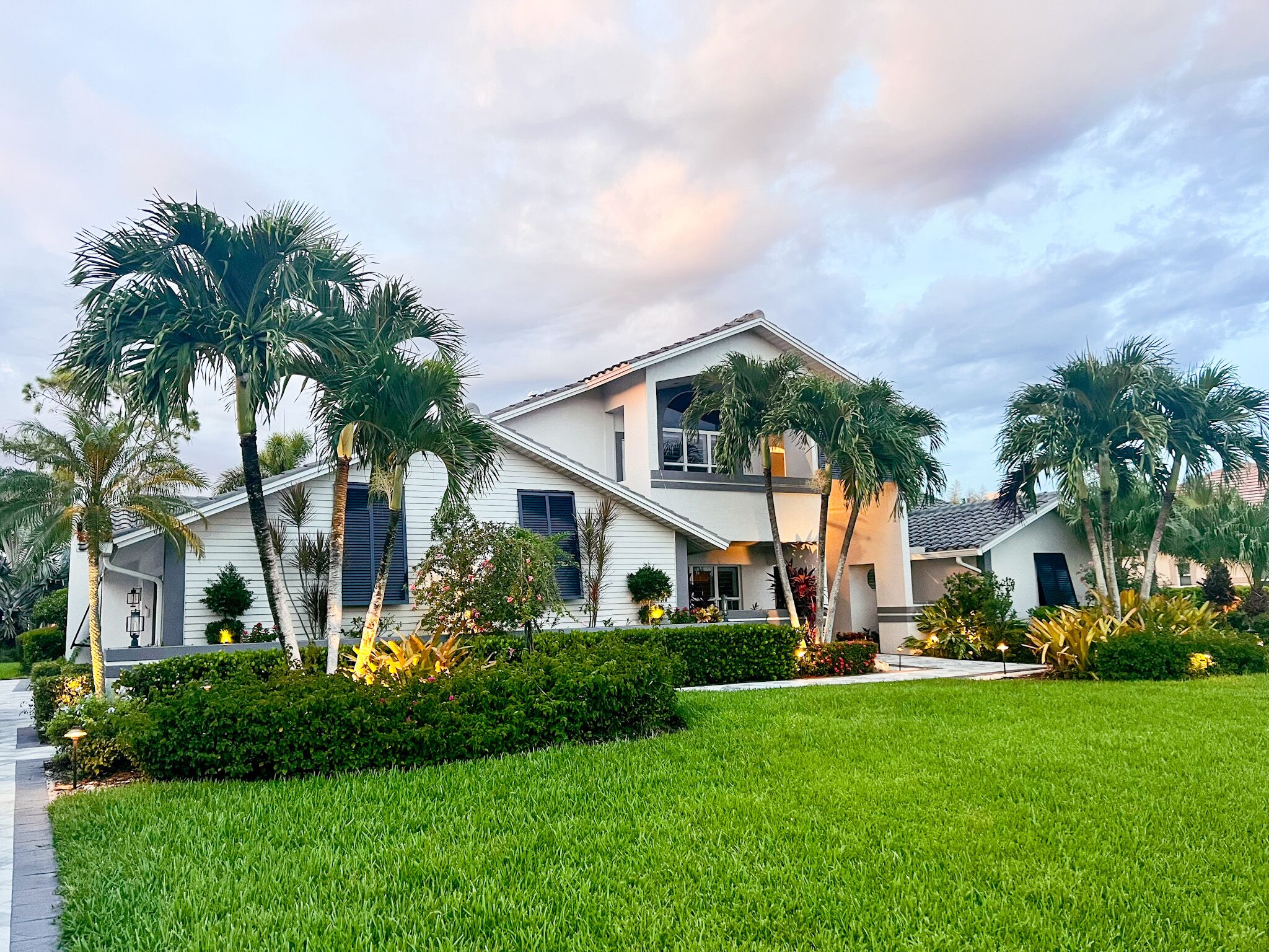 The manicured grounds feature beautiful tropical foliage, preserves